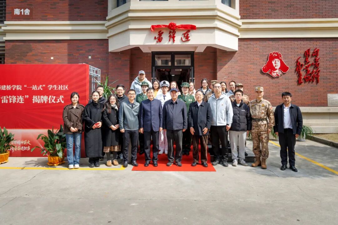 下午1时,上海建桥学院“一站式”学生社区A区气氛热烈。校长朱瑞庭、陶克将军与师生代表共同见证“雷锋连”揭牌仪式。此举标志着学校将国防教育、雷锋精神传承与“一站式”学生社区建设深度融合,开启了立德树人的新篇章。
